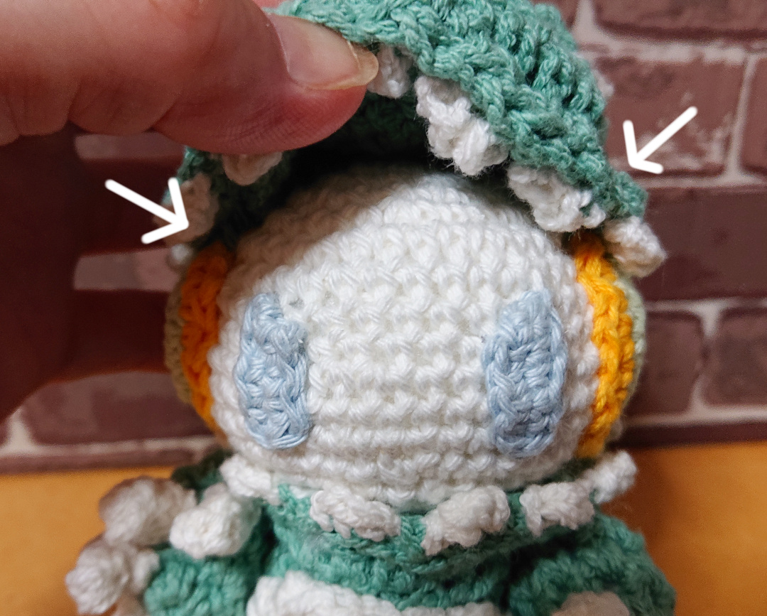 手のところ消しまくってるのは大きさが合わなくて何度も編み直したからw