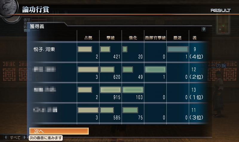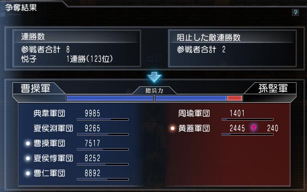 戦闘勝利結果は見るとだいたい「時間切れによる判定勝ち」が多いんですけどね。