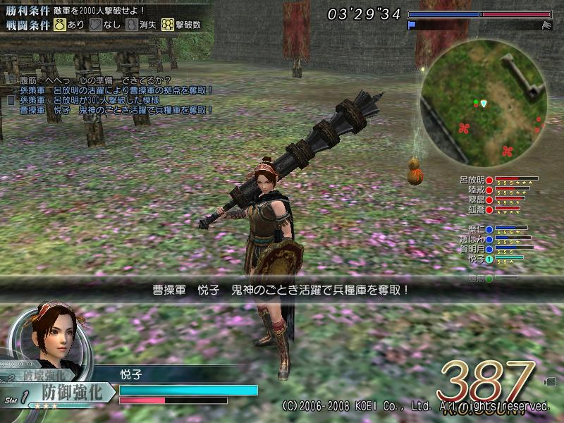 このC1陣使って挑戦・撃破の修羅やってみたんですけど、以前は神速符使って2030人斬りだったんですが、この武器ではアイテム無しで2200人超えることが出来ましたv