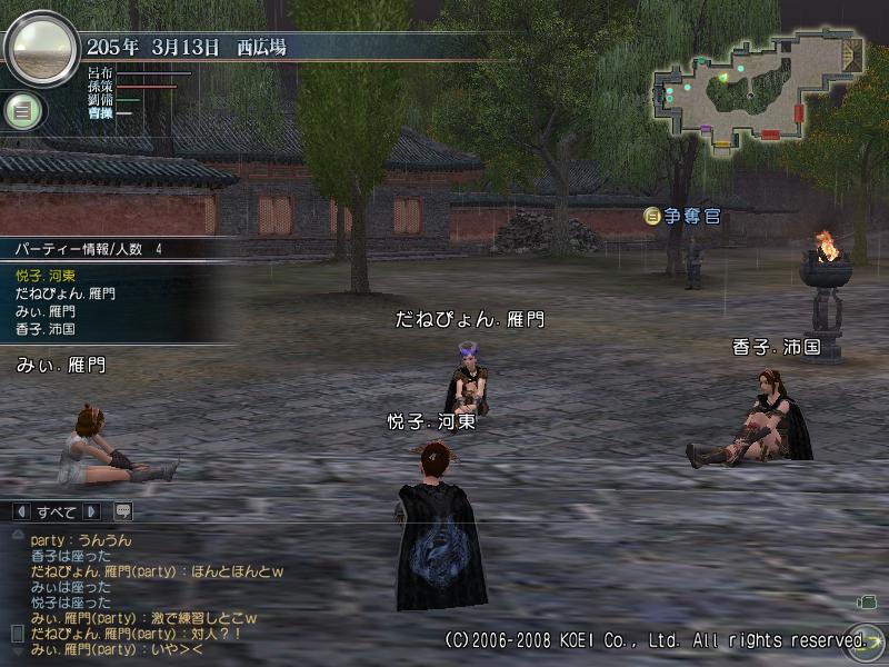 場所は要塞で、みぃさんが兵糧落とした後は右側の青地帯に香子さん&みぃさん、