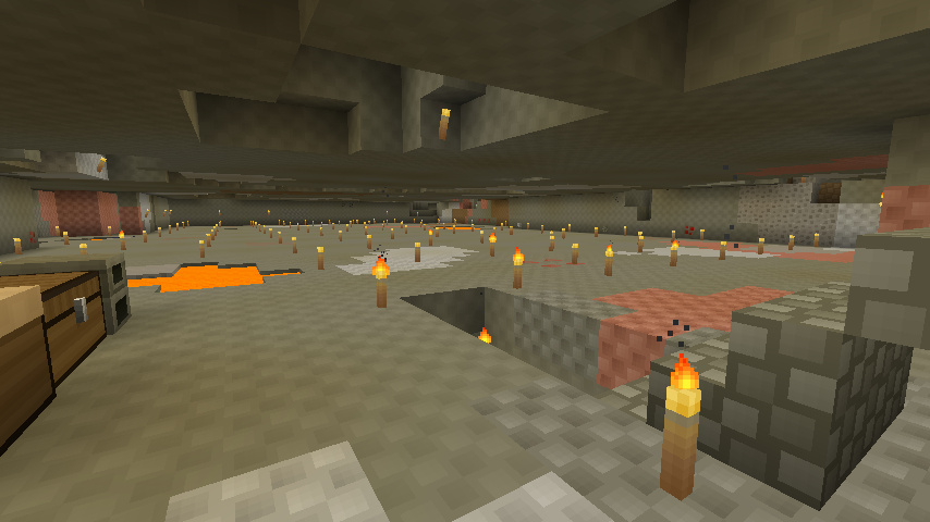 やっぱりブランチマイニング場はついつい掘り拡げてしまいますよねーw 通常ワールドでも、整地はそんなにしないにしても似たようなことはしてしまいますw