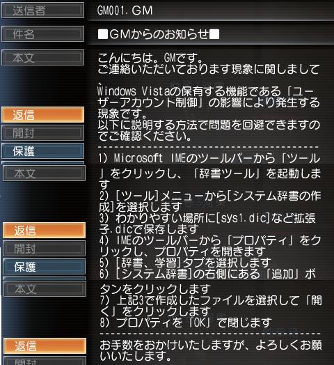 あと、こないだのアプデから辞書登録した文字が変換候補に出てこなくなったので運営に不具合として書簡出してみたんですよ。