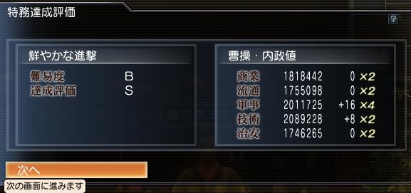 こないだ軍事が100になったんですけども、そういや100になったら内政値×2倍になるんでしたっけね~。