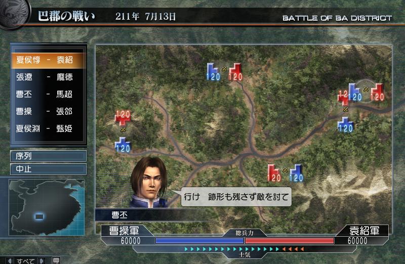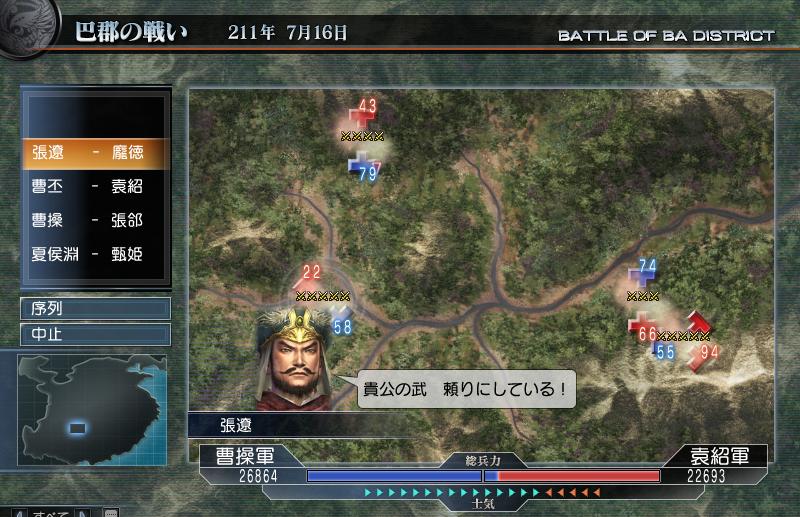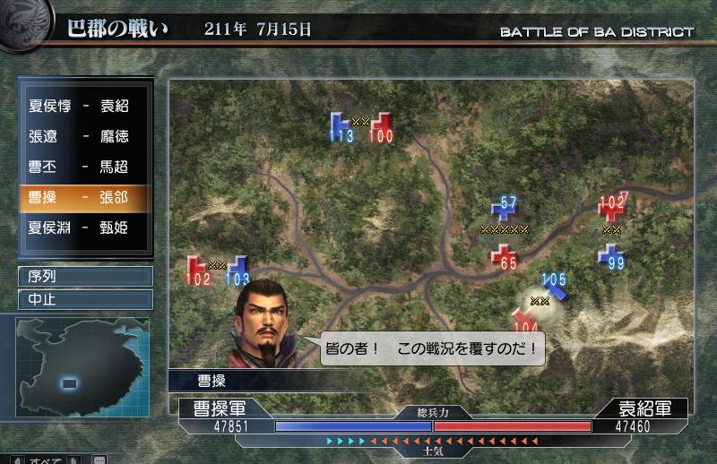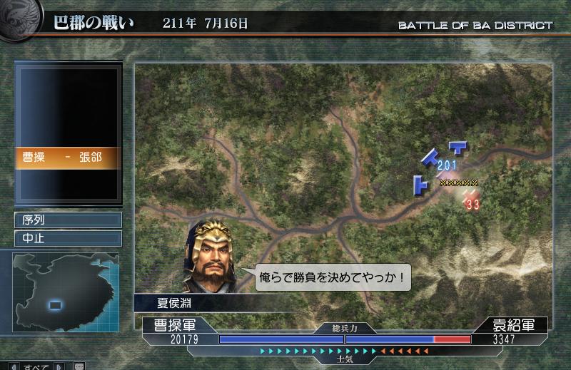 さてさて、お互い兵力が2万台になった時点で、徐々に曹操軍が押してきました!