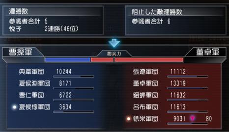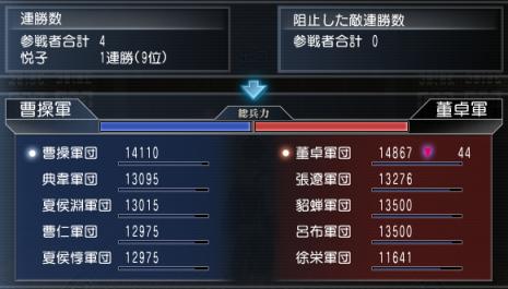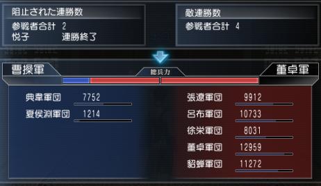 董卓軍の連勝ストップさせたかったのに…負けちゃったよ。