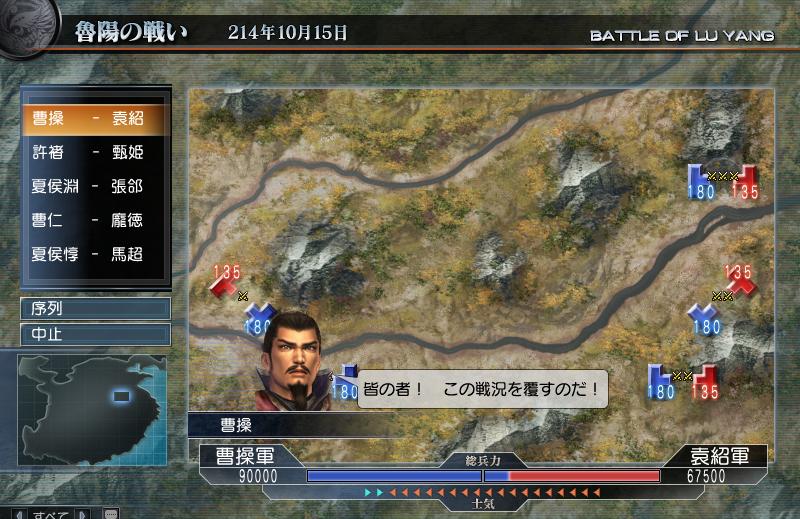 もしかしてこれは、このまま行けば曹操軍勝てるんじゃね?って感じでした。