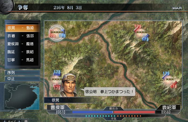でも争奪軍議見たら圧倒的に袁紹軍が押した状態でもうすぐ終りそうだったし、曹操軍の兵力が残り5000切った辺りから兵力もガンガン減らされててさ^^;