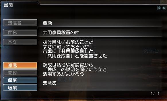この世話役から受けれる特務をクリアすれば、錬成機や錬成鼎が貰えるらしい。