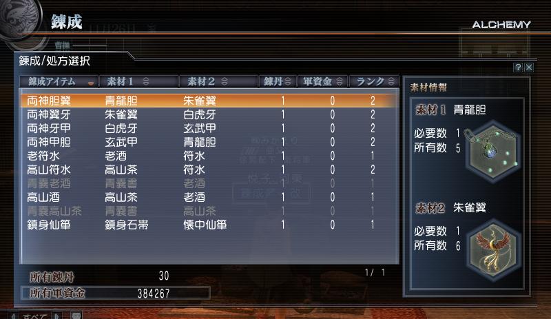 あと、特定の特務をクリアすると新しい処方を覚えたりもします。