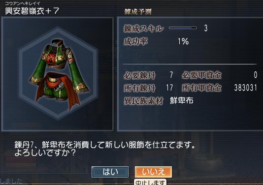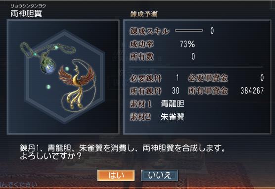 市場にいるおっさんから受けれる特務をクリアすると練成に必要な道具がタダで手に入ります。でもタダだけに成功率は低めですね。