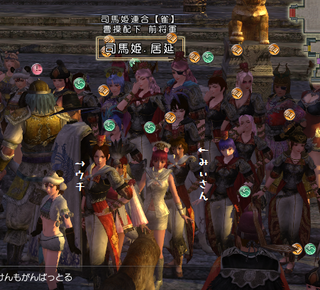 最初は司馬けんと司馬姫がそれぞれ離れて立って、司馬けんのコスした人は司馬けんの傍に、司馬姫のコスした人は司馬姫の傍に…って感じで並びました♪