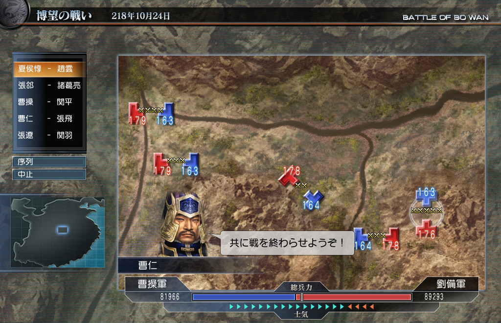 開始と同時に真ん中の橋の上で武将同士(惇vs趙雲)が対峙したらしく