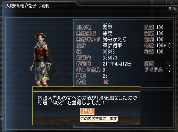 曹操軍にて『悦子.河東』誕生しましたv(゚▽゚*) ワーイ♪