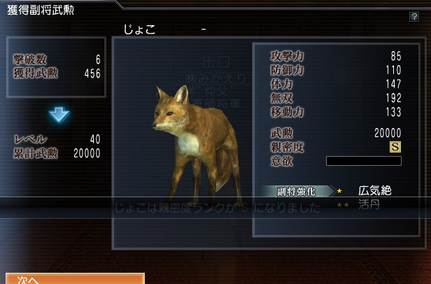 無双格早回ししてたら、ついにじょこちゃんの親密度が【S】なりました!