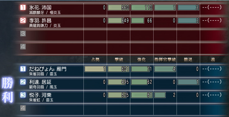 でも無双武将相手では、氷玉系はなかなか凍りにくいから注意は必要だけどね。