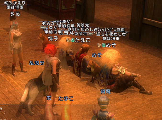 もういい時間だったのでとりあえずたなこさんや氷花さんの武器を見た後、利達さん家に行くと、そこにめそさん発見!座っていましたww