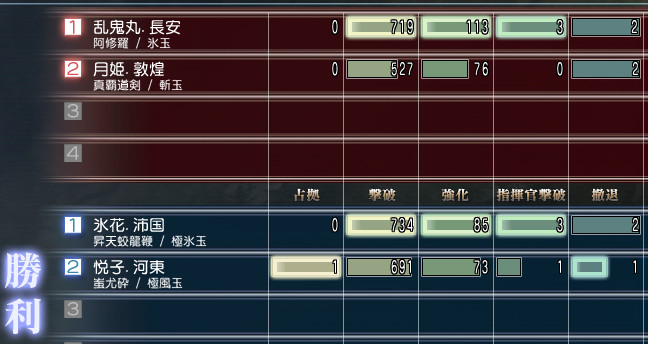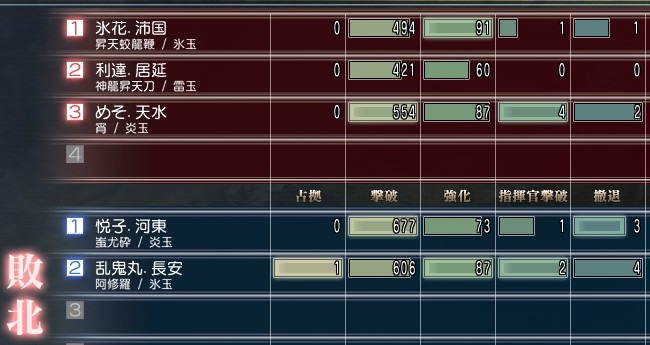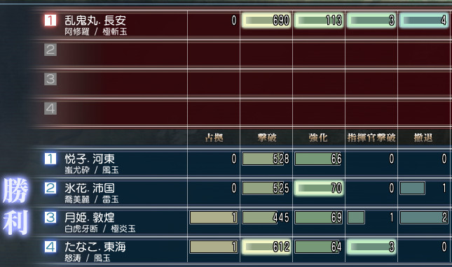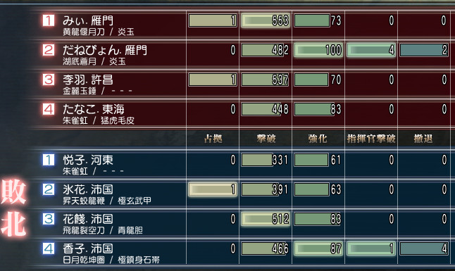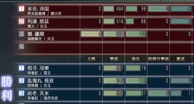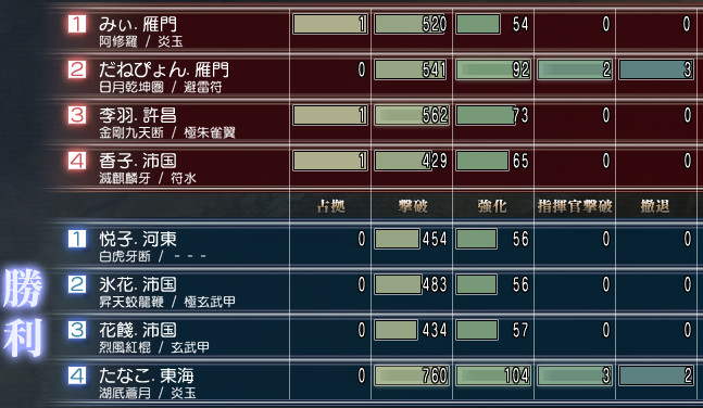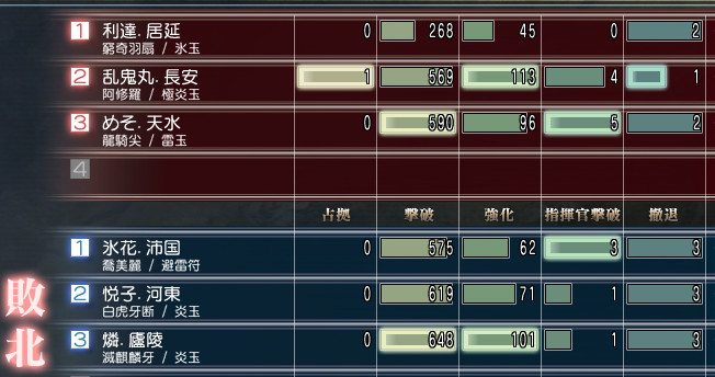 ちなみにボスの撤退数が合わないのは、体力ミリの時に弓兵にやられたからですw