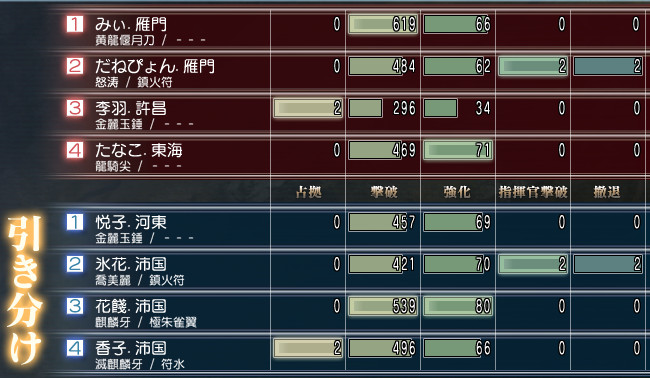 争奪から利達さんも戻ってきたところでやっと全員揃ったけど、ボス・みぃさん・香子さん・花さん・李羽さんが落ちちゃいました。お疲れ様でした~!