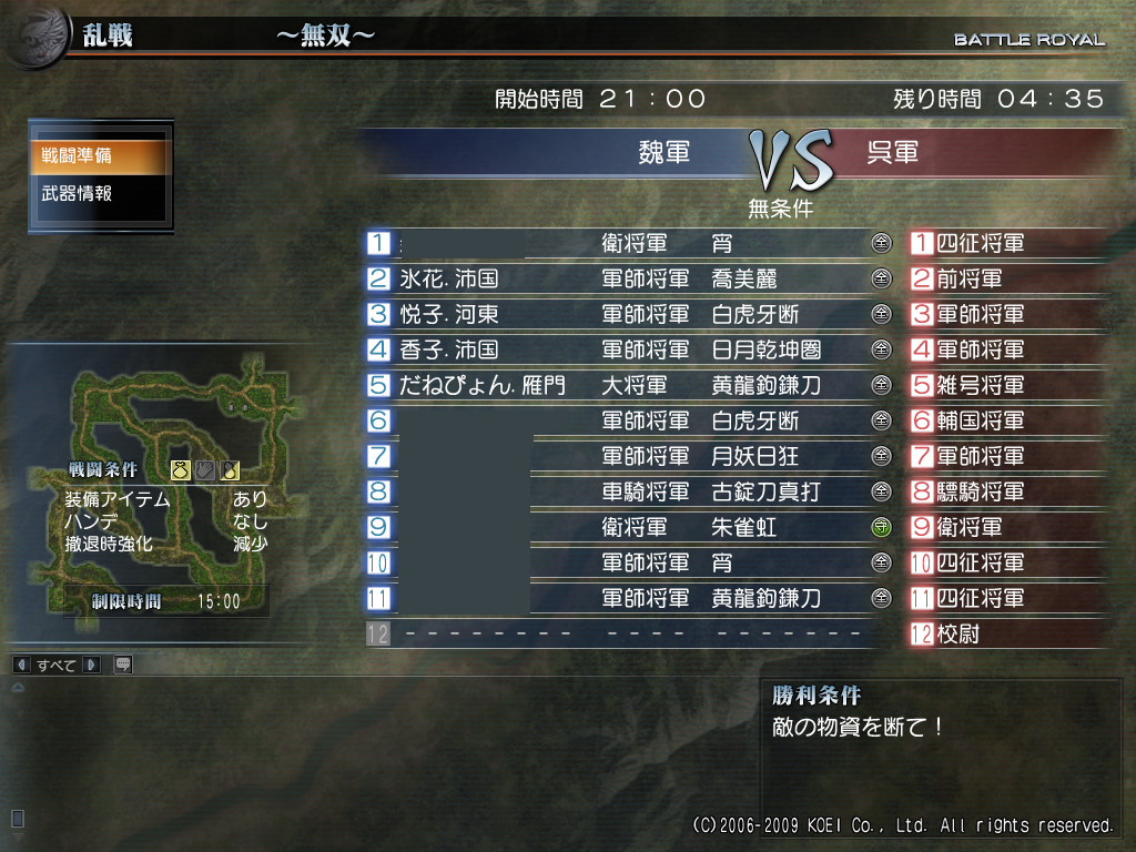 MAPは乱戦の砦みたいに広いMAPでさ、無双武将率いる部隊をみんなで協力しながら倒して進んで行って、最終的には総大将武将を倒せばクリア!