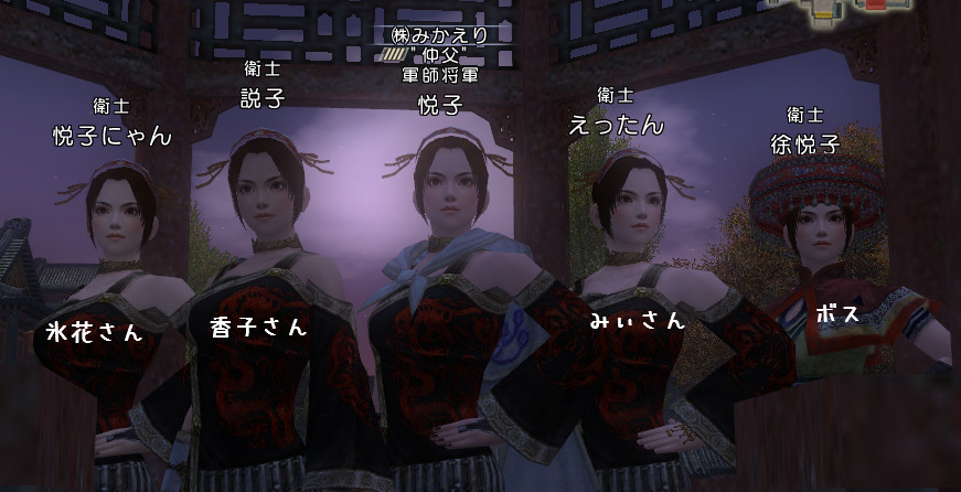悦子にゃん=氷花さん 説子=ボス えったん=香子さん 徐悦子=みぃさん