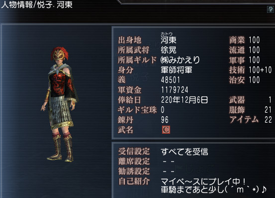 ついに車騎将軍まであと義1500です!!