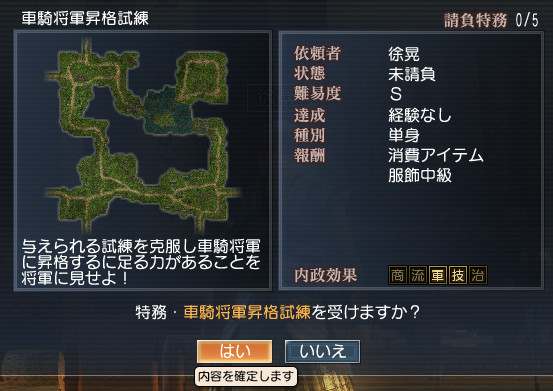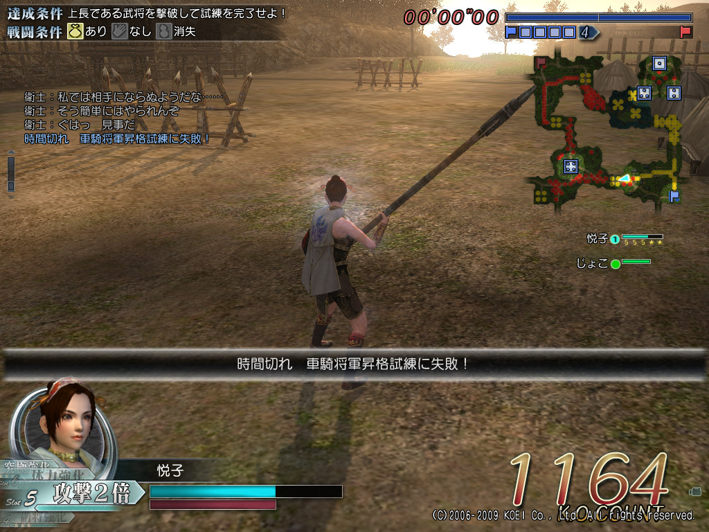 試練内容は…1000人撃破+拠点4つ制圧+衛士3人撃破⇒徐晃さん撃破!