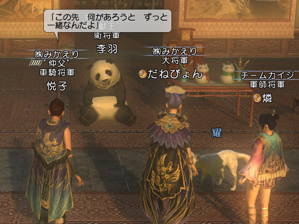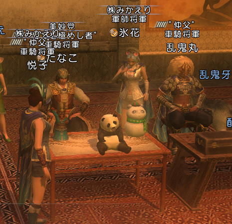 だねぴょん.雁門(say)> あっこれはこれは、虎の絨毯を踏んでいた李羽さんもご一緒でしたかヽ。(ー_ーメ) しゃきーん
