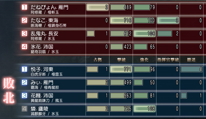 この時、氷花さんと花さんは乱戦待機画面中だったんですが、
