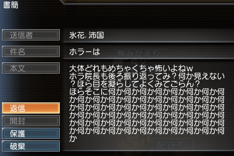 そんな怖い話で盛り上がった後、たなこさんが風呂入る前に氷花さんに書簡送ったそうなんですが、送られた書簡を見て氷花さんが絶叫ww