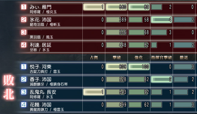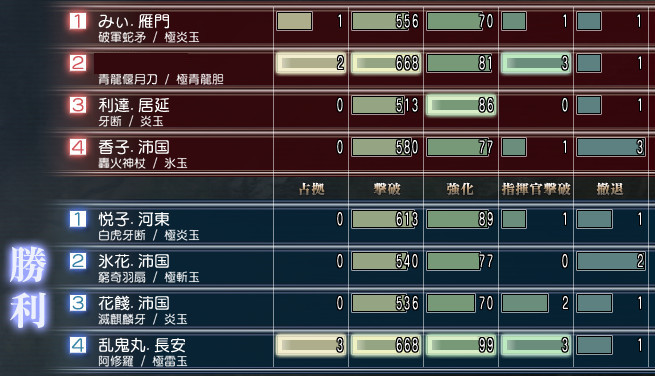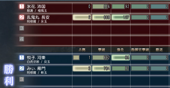 ちなみに、部屋を立てるときに勝利条件選択をミスったらしく、制圧になってたのでこちらが勝ちになってますが、対決の結果だけみると、引き分けです♪