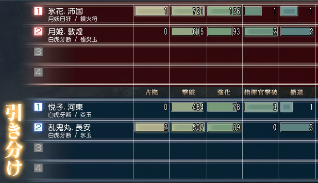 再び 乱さん&悦子 vs 氷花さん&月姫さん となりました。