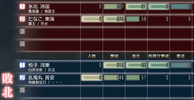 今回の勝敗【9戦中 6勝3敗(NPC4戦)】