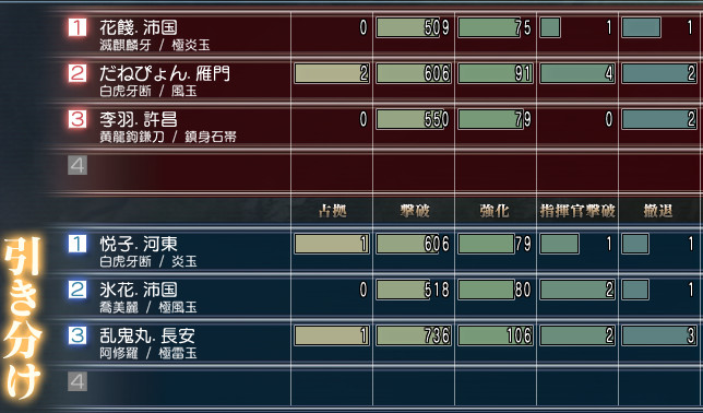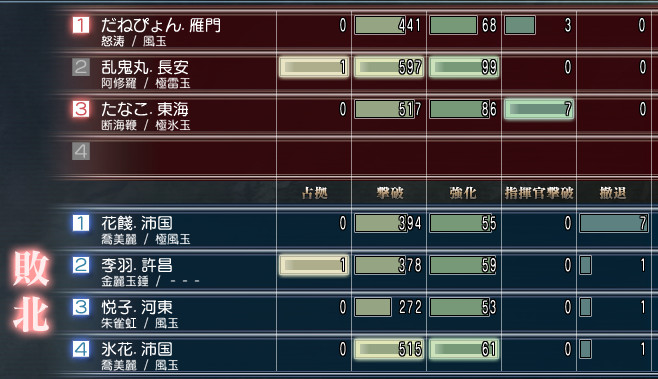 どうやらボスが副将スキルの無謬を付けてたらしく、乱さんの鳳凰無双でもあまり凍らなかったらしい。