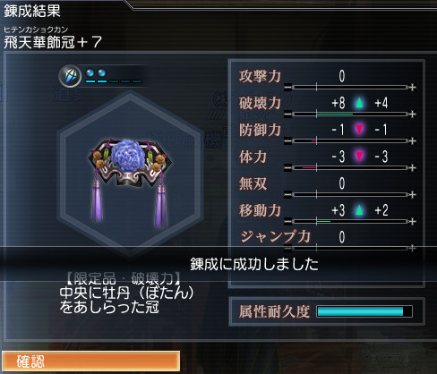 さ、この服を青系の染めたら今度は同じく争奪の時に付けてる飛天華飾冠も青系に!!