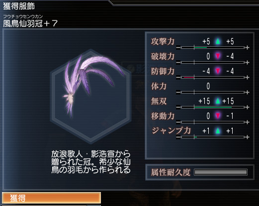クリアするとこの頭服飾『風鳥仙羽冠+7』が貰えます♪通称『影山服』ですねw