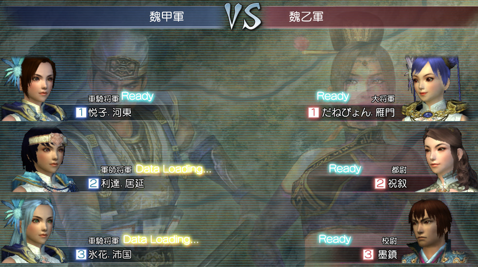 戦闘準備中、お互い攻撃3しか強化されてない武器ということがわかり、