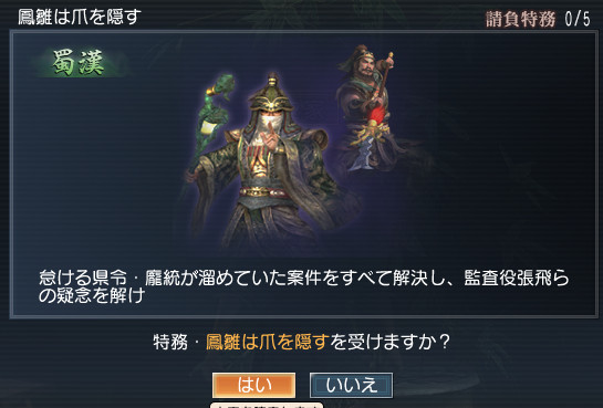 えーっとですね…特務内容は龐統に色々と用事を押し付けられて、それらを解決していく…