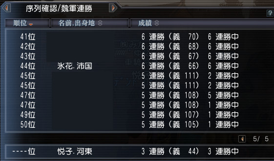 さらに2勝したらしく、氷花さんが6連勝で途中序列にランクインしてました!