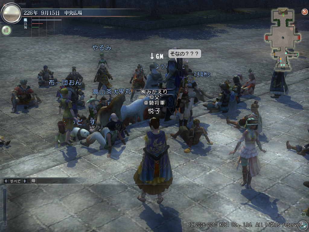 そうそう!イベント中『ギルド3人で設立できるようにしてーやー』って叫んでる人が居たんだけど、最後の最後で司馬姫がその叫んでる人に一喝!!