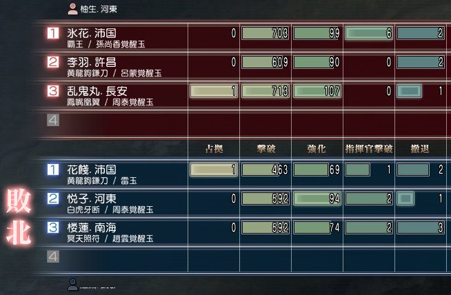 ○ … 敵拠点 都城 NPC戦 氷花さん途中で回線落ち!&陸遜倒す前に勝利ww