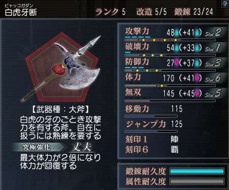 やはり破壊2は厳しいみたいなので、ウチの大斧も思い切って鍛錬を変えました!