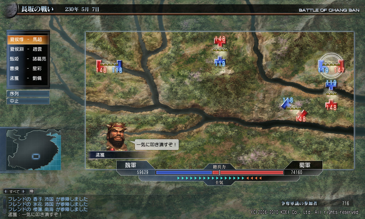 兵力はこちらが負けてますが、士気は勝ってますね~。