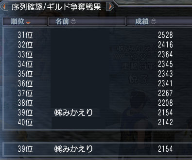 みんな連勝が続いた所為か、㈱みかえりのギルド争奪戦果がかなり上がりました!