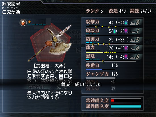 ヤケクソ気味に武器に属性付けやってみたら4回目で赤くなった━゚+.ヽ(≧▽≦)ノ.+゚━ ッ !!!