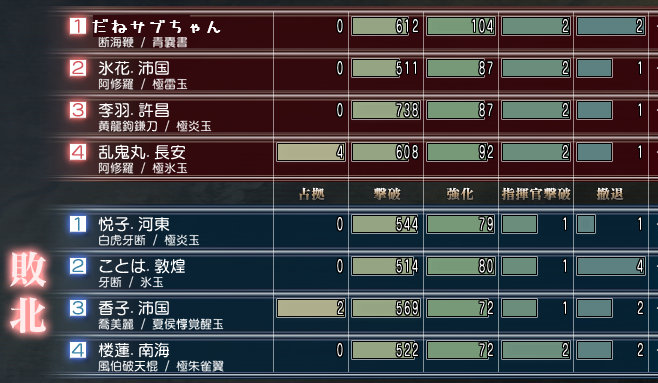 4戦目!だねサブちゃんの甘寧玉が恐ろしかった(( ;゚Д゚)))ガクガクブル