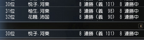 ちょうど8連勝したところで争奪が終わったので、序列に載ってしまいました(*ノェノ)キャー