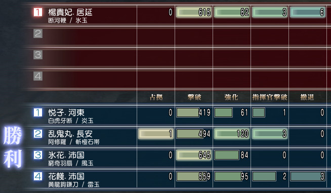 結果はこのようになりました。これ、乱さんの斬がなかったらこちらが危なかったかもねw