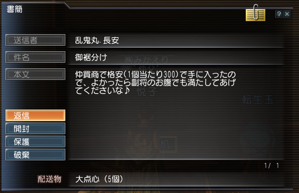 悦子でINするとチリンチリンと音が鳴ったので何が売れてるかな~って書簡を覗いて見ると…