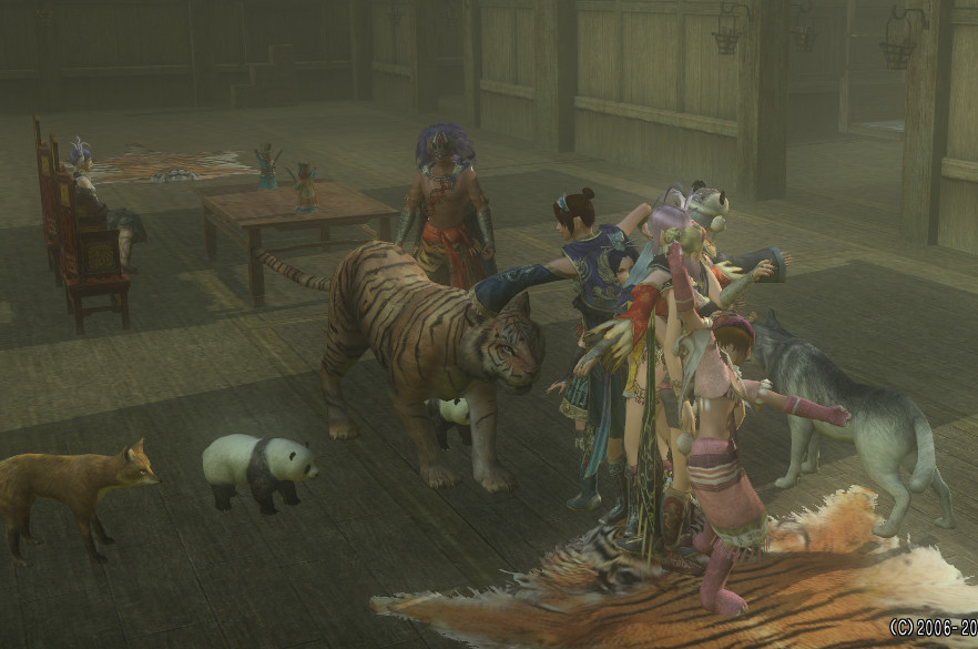 もう、みんなさっそく虎絨毯のボコッと盛り上がってる頭の部分に乗りまくりwww