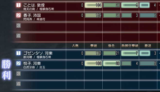 香子さん対ゴゼンタソさん、ことはさん対悦子というタイマンでしばらく戦ってましたw